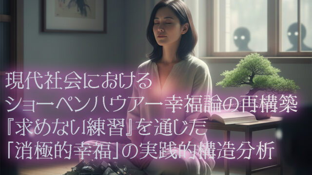 現代社会におけるショーペンハウアー幸福論の再構築 『求めない練習』を通じた「消極的幸福」の実践的構造分析 現代の過剰な比較社会において、何故今ショーペンハウアーが再評価されているのでしょうか。その核心は、幸福を足し算で増やすのではなく、苦痛...