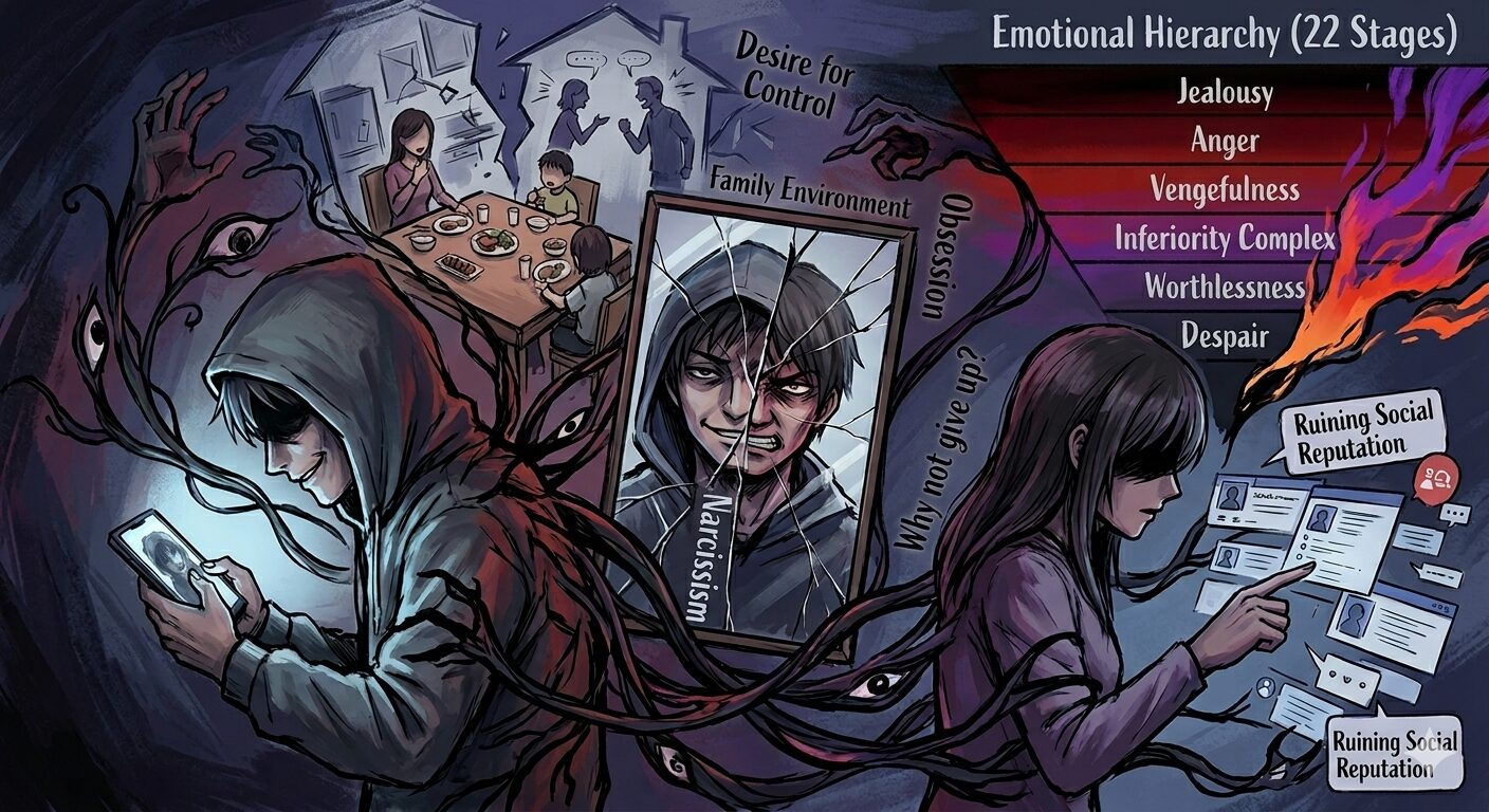 Clinical evidence consistently indicates that the narcissistic personality and pathological fixation of stalkers is formed less by innate predisposition than by “attachment failure” in the early childhood developmental environment. Their behavior, while housed in an adult body, reflects an internal fixation at the stage of an infant — who panics and gives chase the moment the caregiver disappears from view, feeling their survival is threatened.