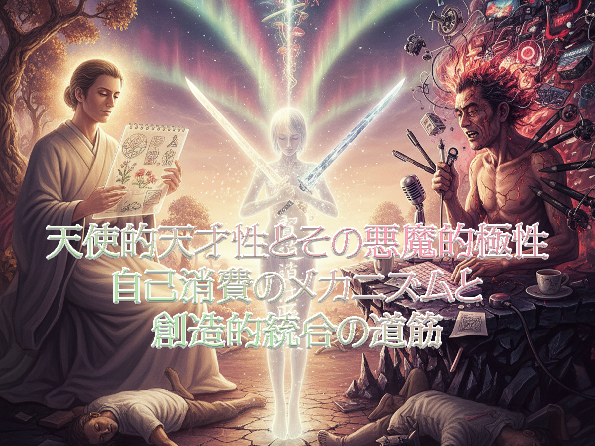 本報告書は、創造性の根源に存在する二つの極性、すなわち「天使的天才」と「悪魔的天才」という哲学的概念を、深層心理学、神経生物学、および精神病理学の視点から厳密に分析し、悪魔的な破壊衝動を持続可能な創造的エネルギーへと昇華させる為の統合的な枠組みを提供する。